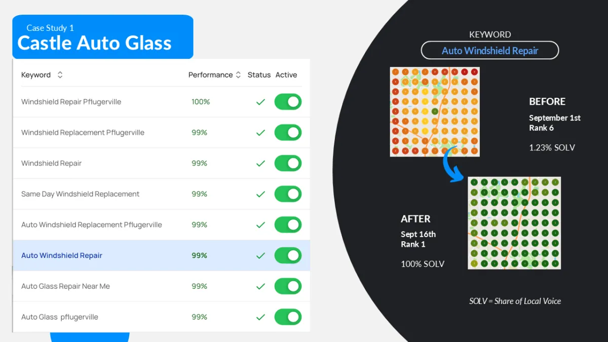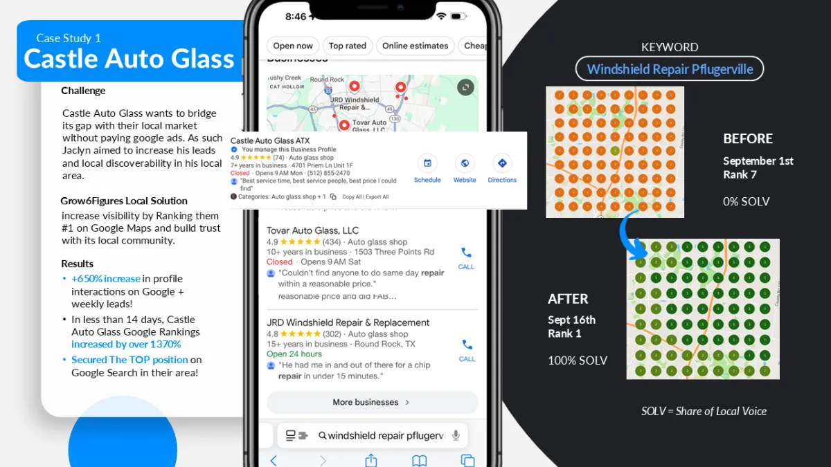 The Challenge: Castle Auto Glass needed a cost effective way to reach more local customers without paying for Google Ads.